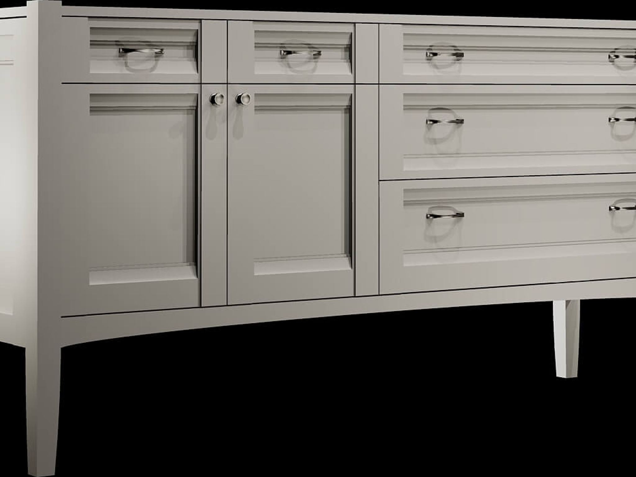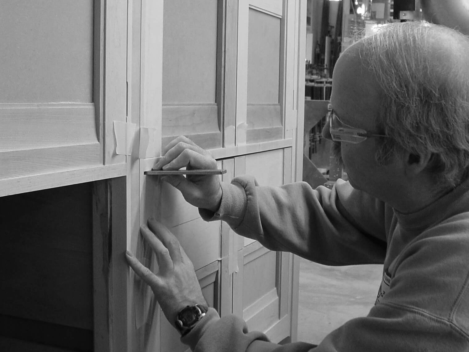 Its basis is the counterpoint between the powerful thrust of vertical pilasters and the lyrical curves and sweeps of the horizontal elements set between them. It is clear, crisp, clean, and timelessly modern, yet supported by a vocabulary of detail that enriches and clarifies its form. It distills the languages of form, proportion, rhythm, and detail of the Gothic cathedral and early Modern skyscraper to their essence, expressed in the form of the finest craft built cabinetry.