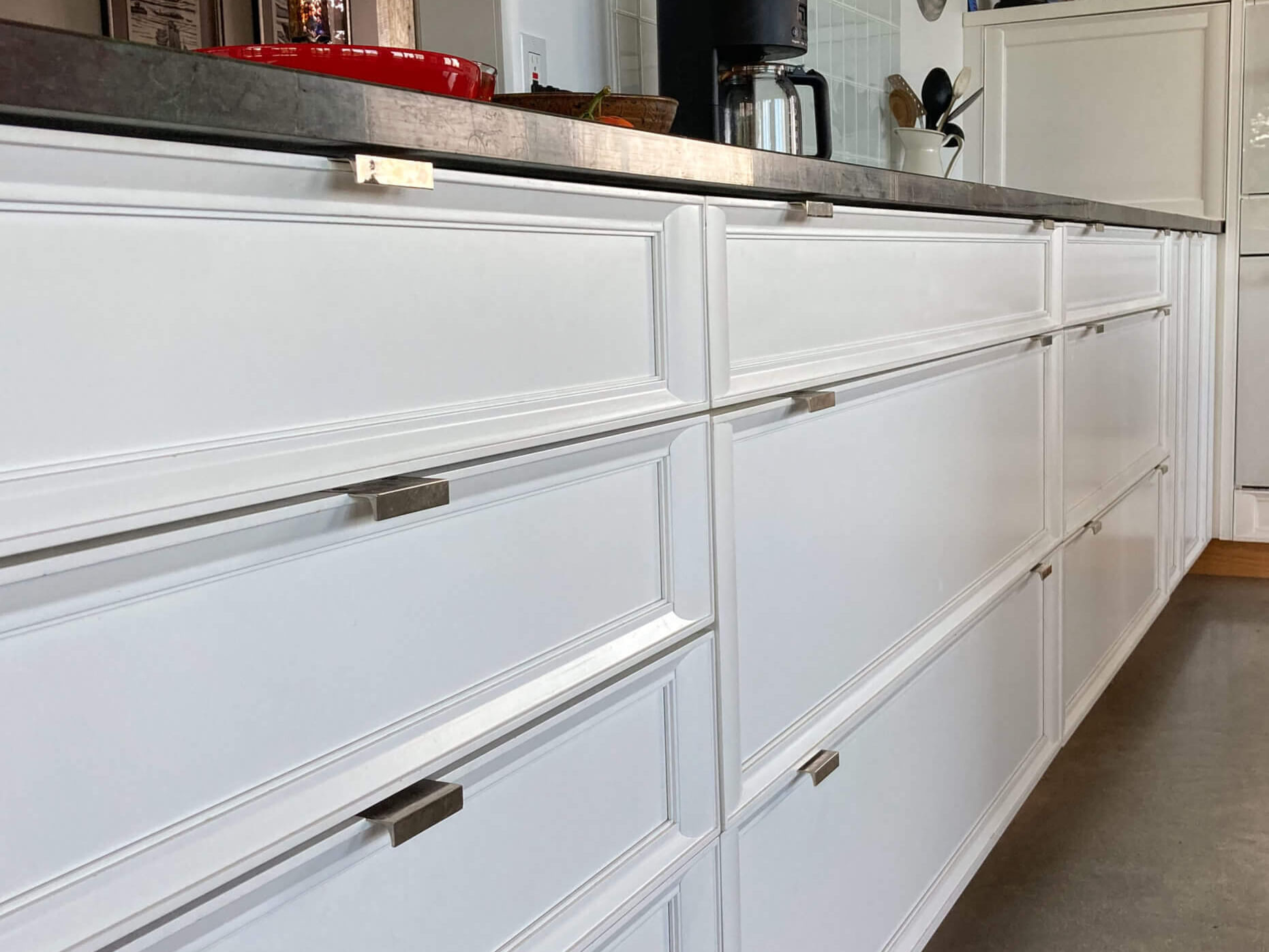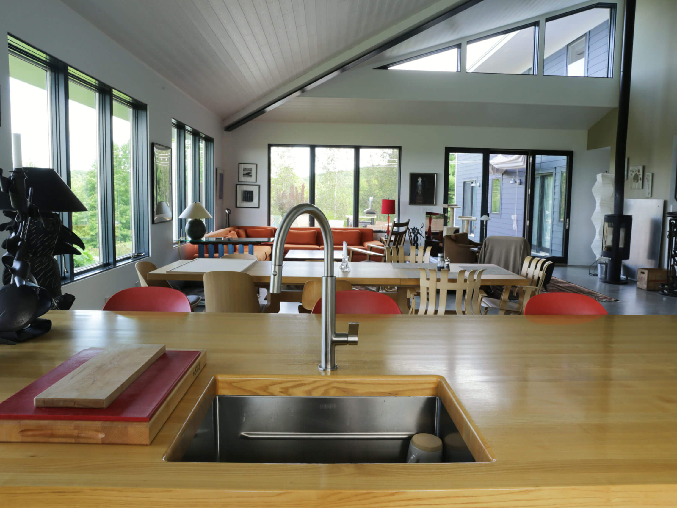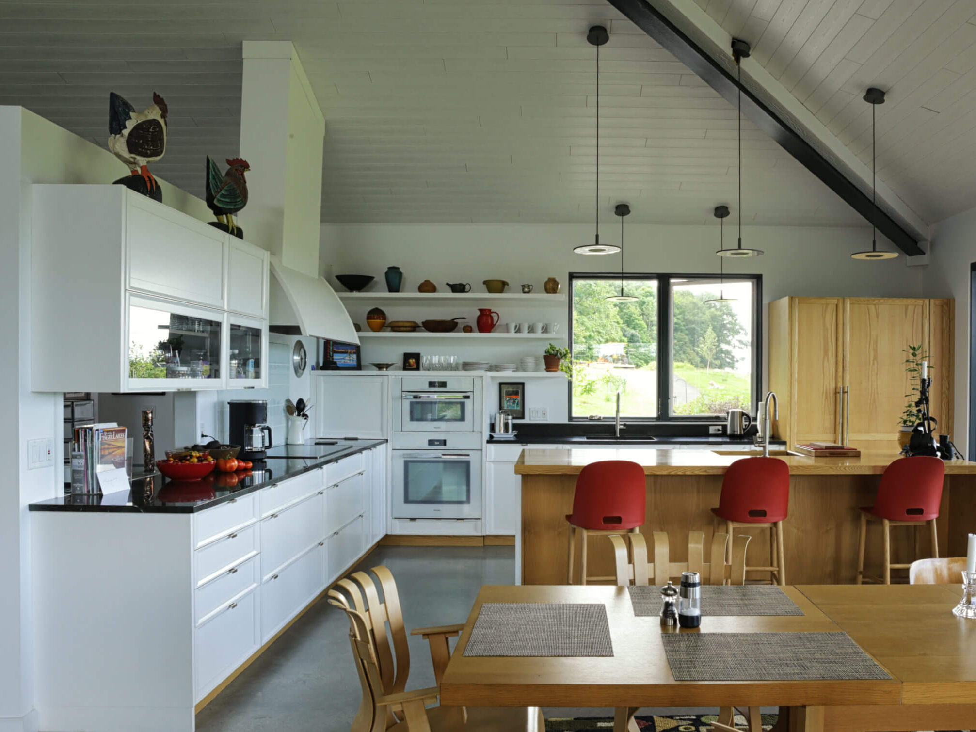 The Prairie series debuted at the Architectural Digest Home Design Show in New York in the spring of 2015, shown as a full kitchen with a complete integrated appliance package from Miele. Shortly after the show ended, a client and friend asked me to design the kitchen, baths, and office for the residence they were building in the Finger Lakes region of New York State. Prairie’s style was compatible with its understated modern aesthetic. Through rearrangement of the cabinets and a few added elements, the show kitchen found a happy new owner here.