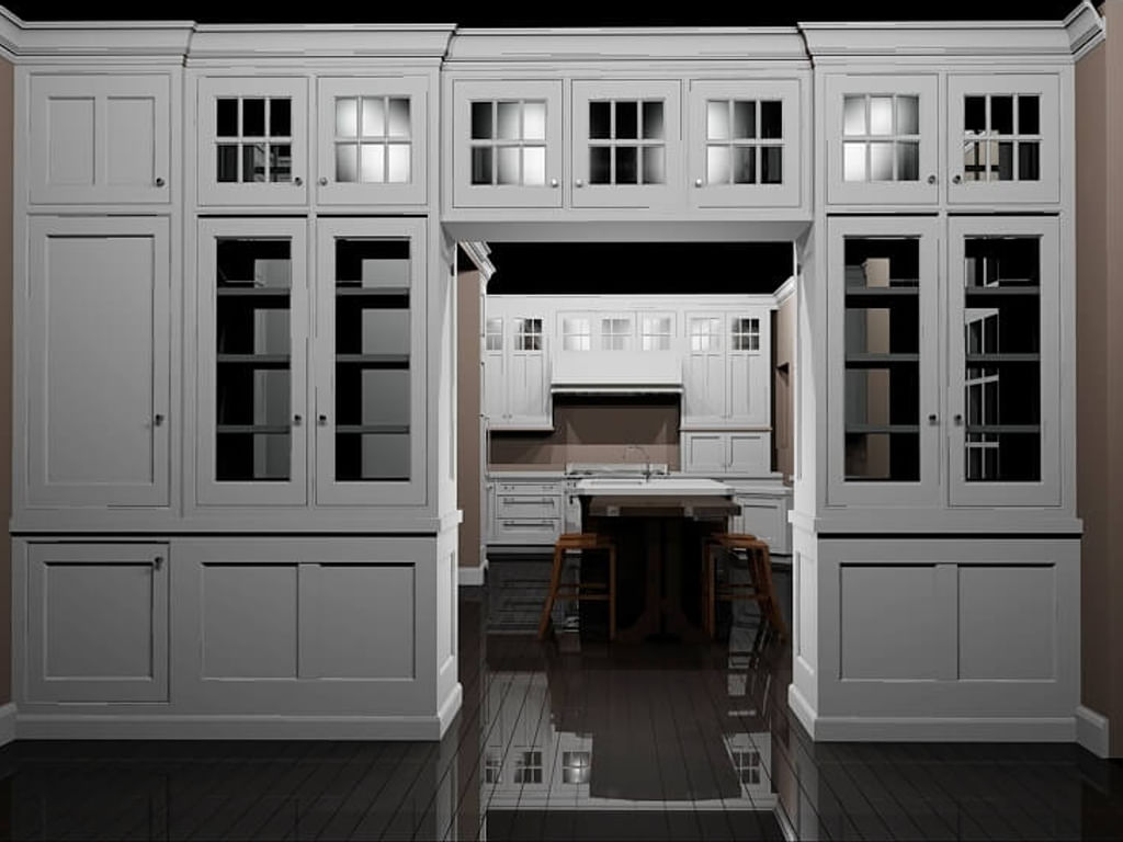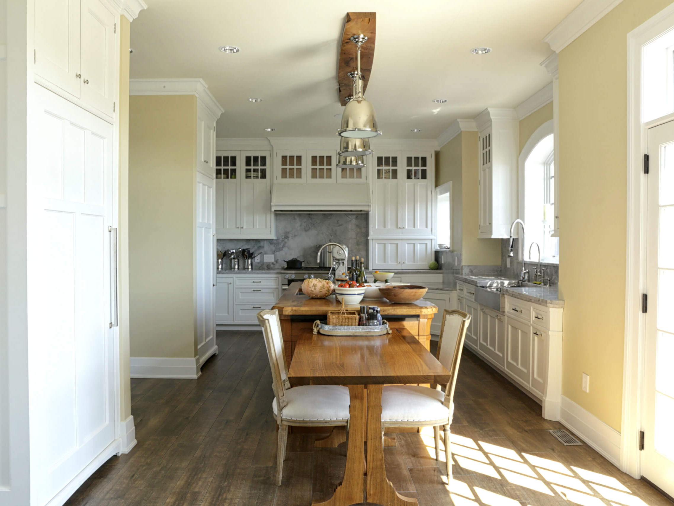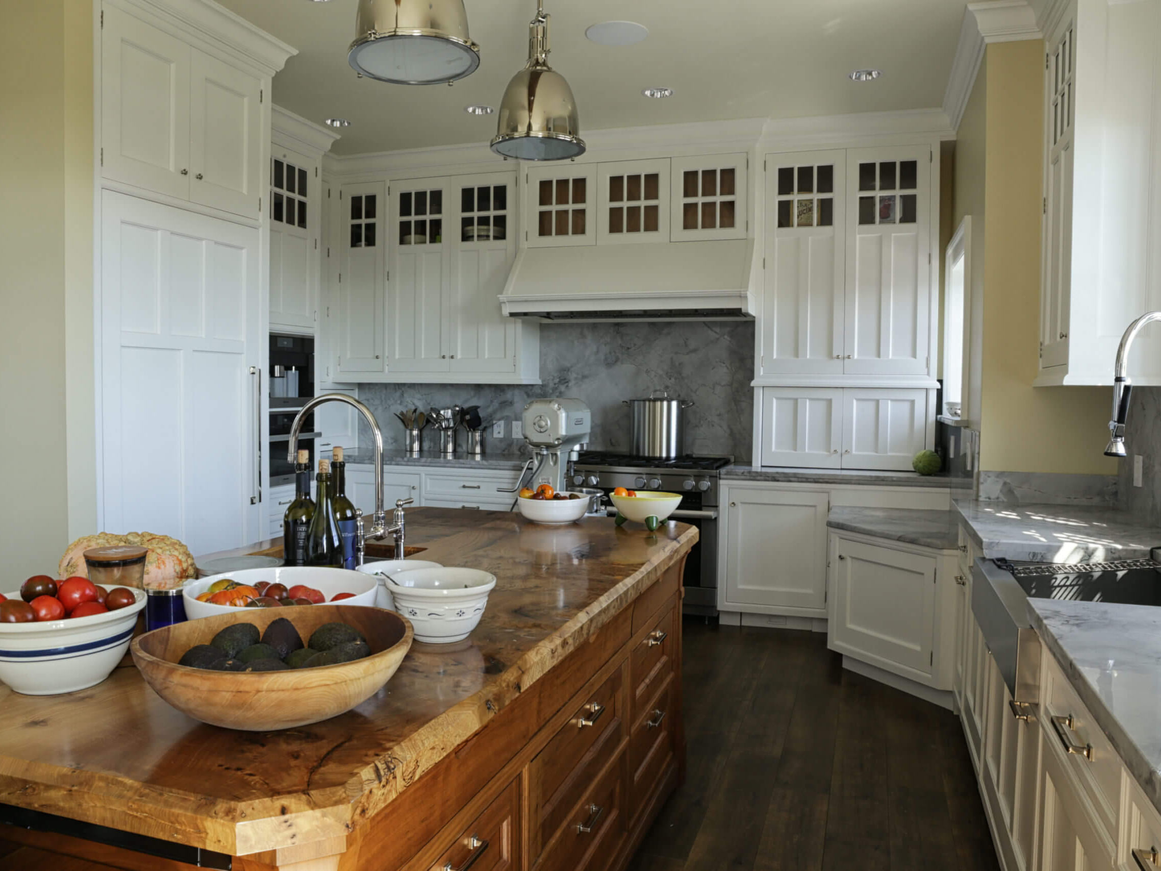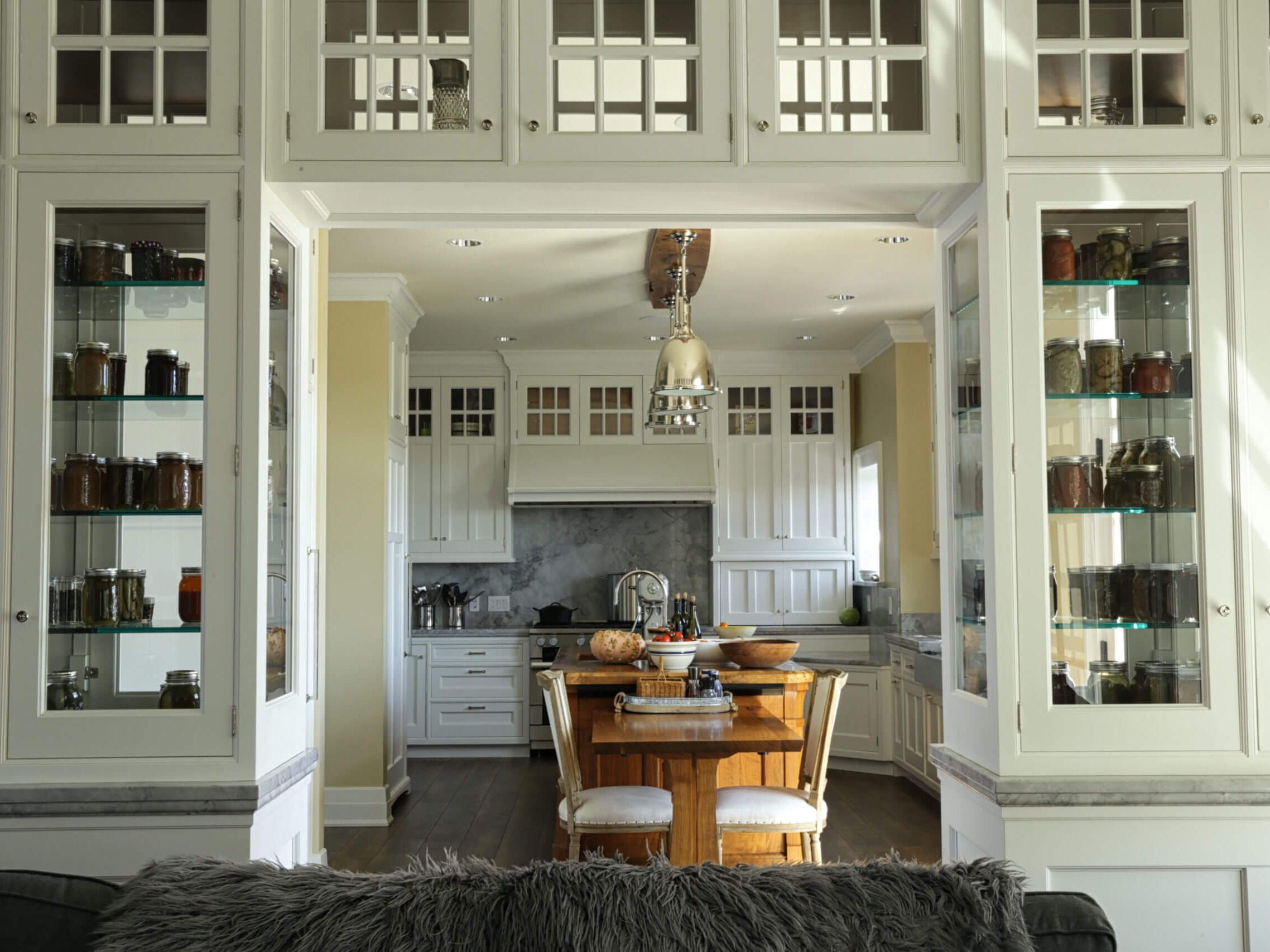 The house was already well under construction; walls up, windows installed, with all utilities in place when the homeowners fell in love with the new Ruskin series cabinetry at the Architectural Digest Home Design Show. They asked me to redesign the kitchen using Ruskin elements, but not to change the predetermined locations of built in appliances and fixtures. As this was to be one of the first installations of Ruskin, it needed not only to fulfill the requirements of the homeowners, but also to demonstrate the unique design characteristics of the series.